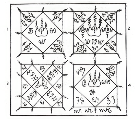 – Hình 4 là lá Phép của tông phái chư vị Năm Ông (Năm Phương Phật và Năm Đạo Binh Trời) dùng để tĩnh tâm tham thiền.