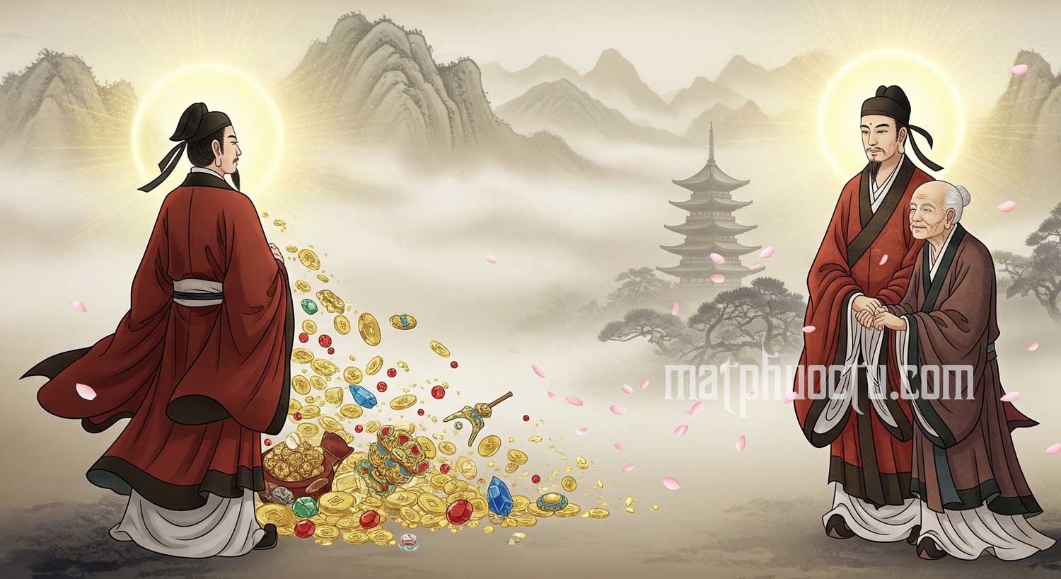 Tiền tài như gió cuối sương, Có rồi lại mất, vấn vương ích gì? Chỉ câu nghĩa trọng tình tri, Mới là báu vật mang